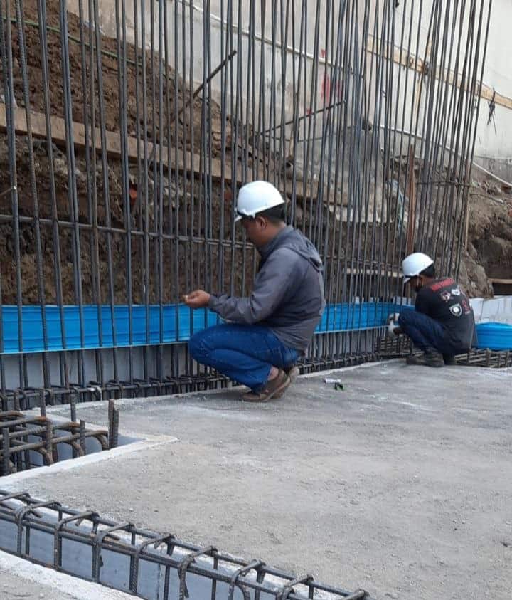 Waterstop adalah material tahan air yang digunakan dalam konstruksi untuk mencegah masuknya air melalui sambungan, celah, atau retakan pada struktur beton. Pekerjaan waterstop melibatkan pemasangan material tahan air di konstruksi, seperti pada sambungan beton, untuk mencegah masuknya air. Material tersebut biasanya berupa strip karet atau PVC yang dipasang pada struktur beton untuk mencegah kebocoran.